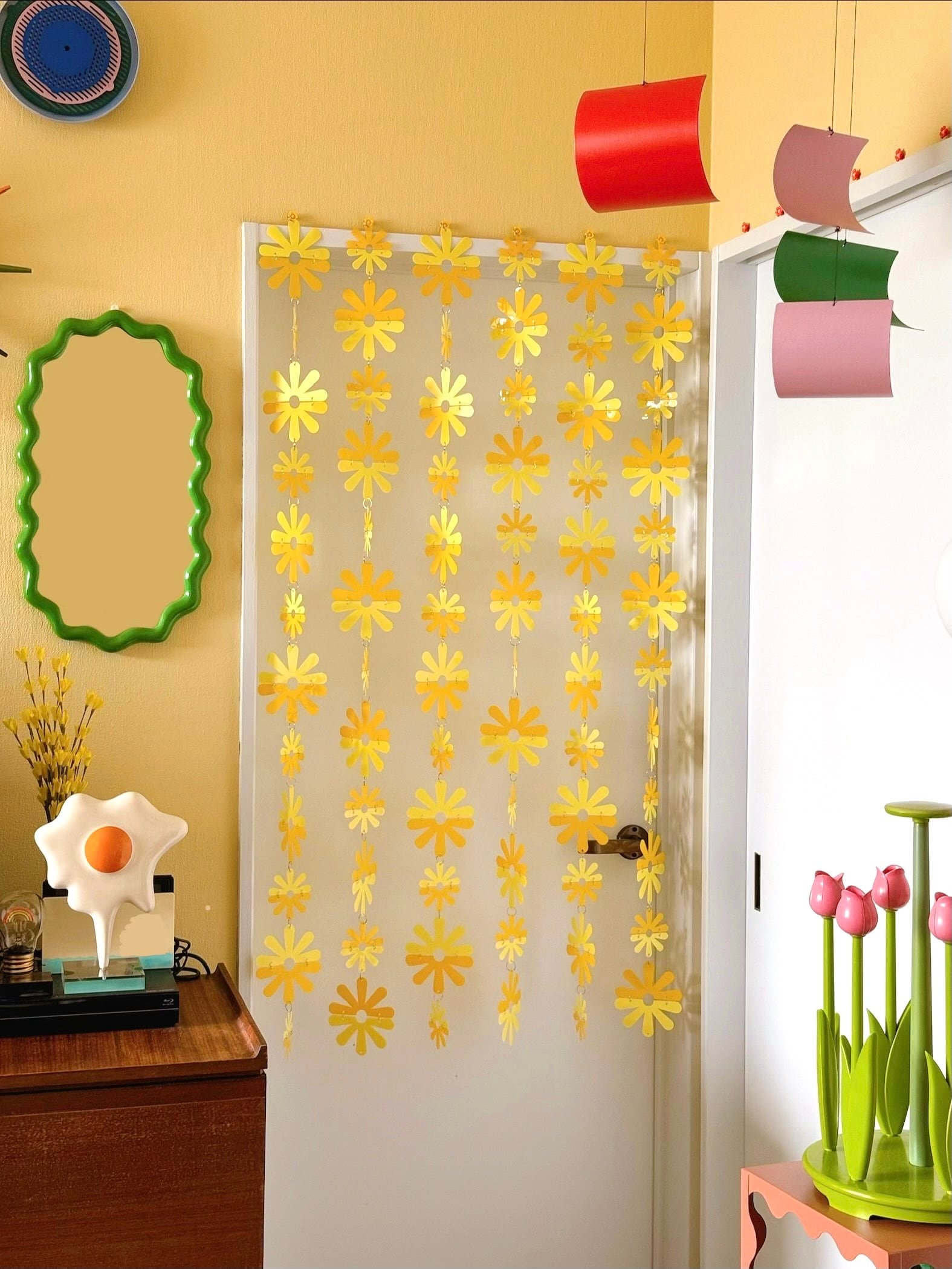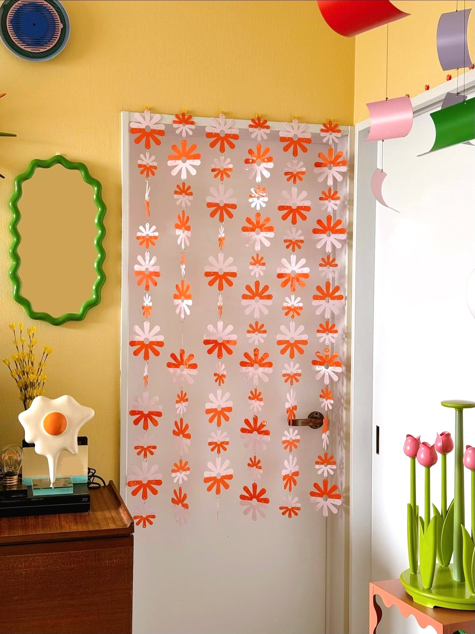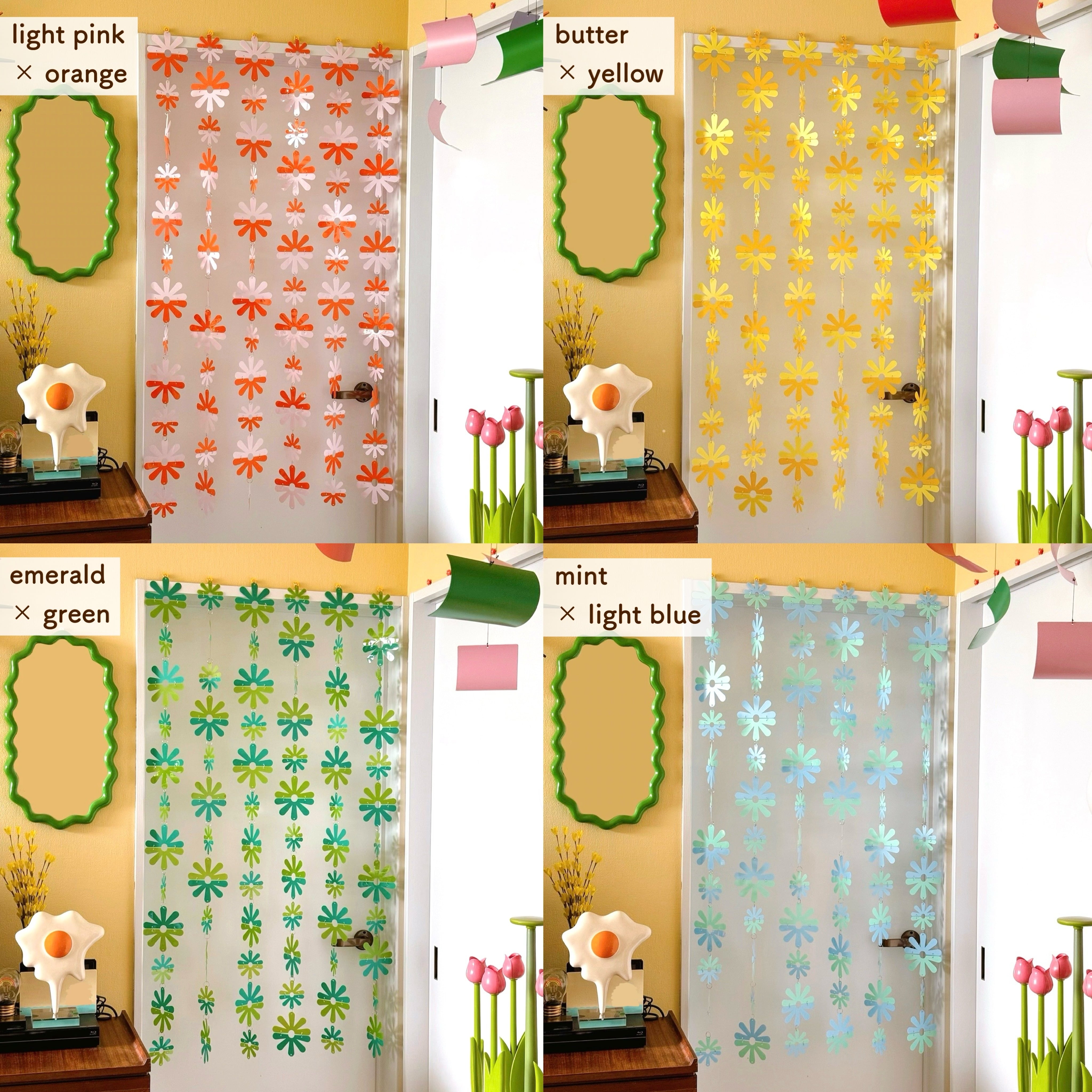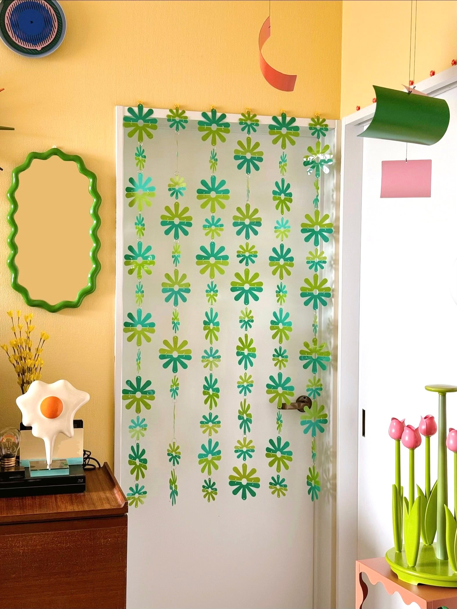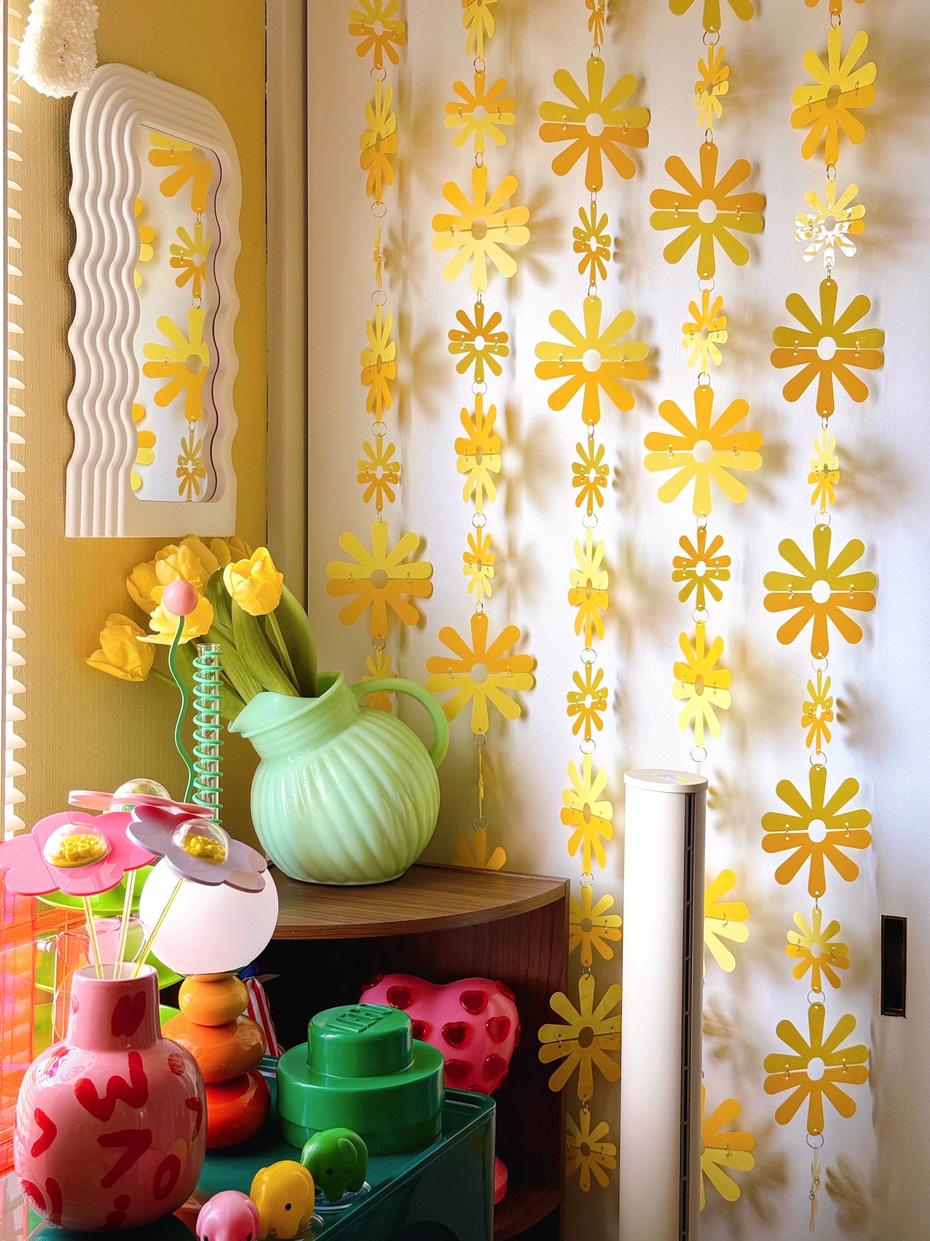 昭和時代のお家によくあったビーズカーテンやプラスチック素材を使った暖簾から着想を得た、当時を知る人には懐かしく、当時を知らない人にはどこか新鮮なインテリア装飾です。