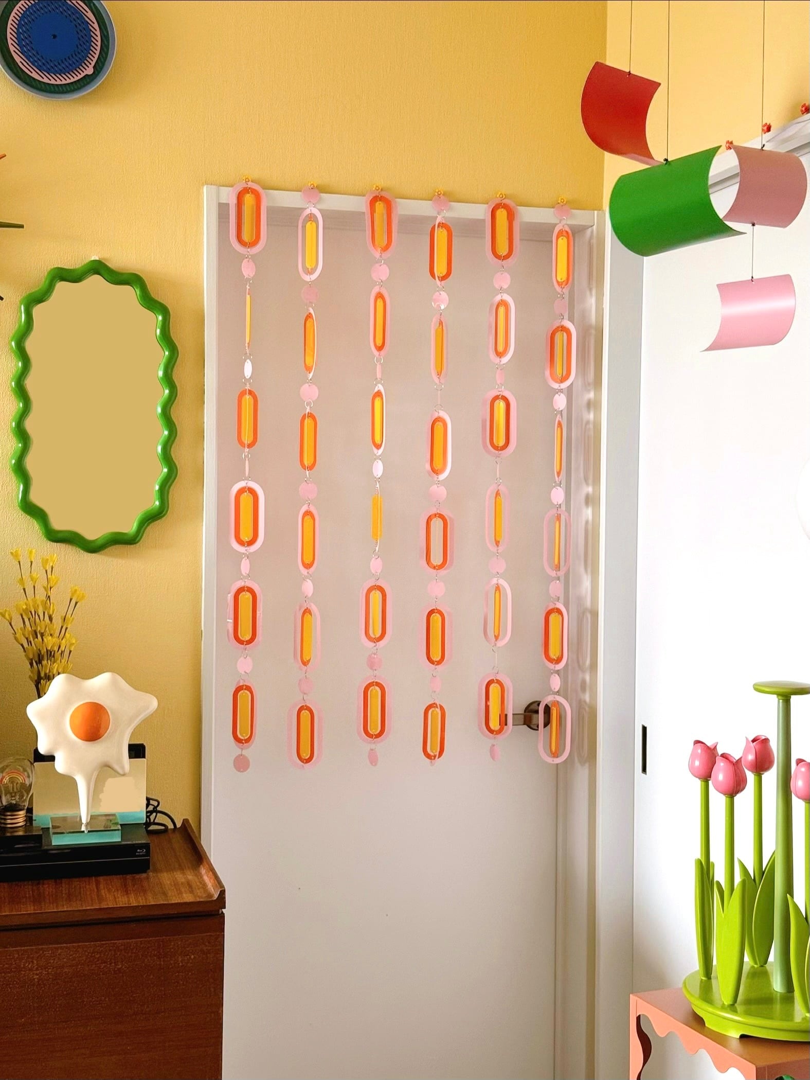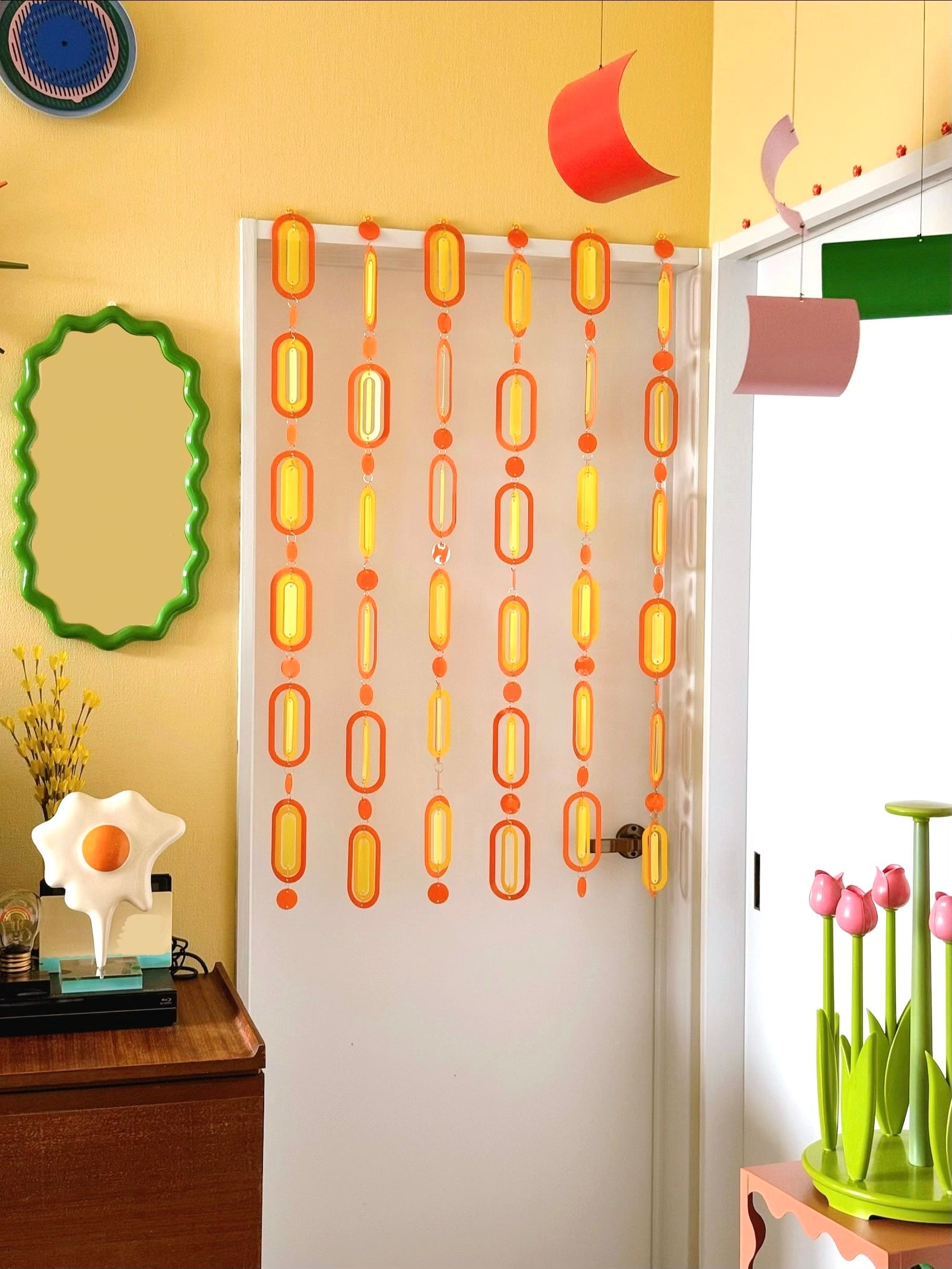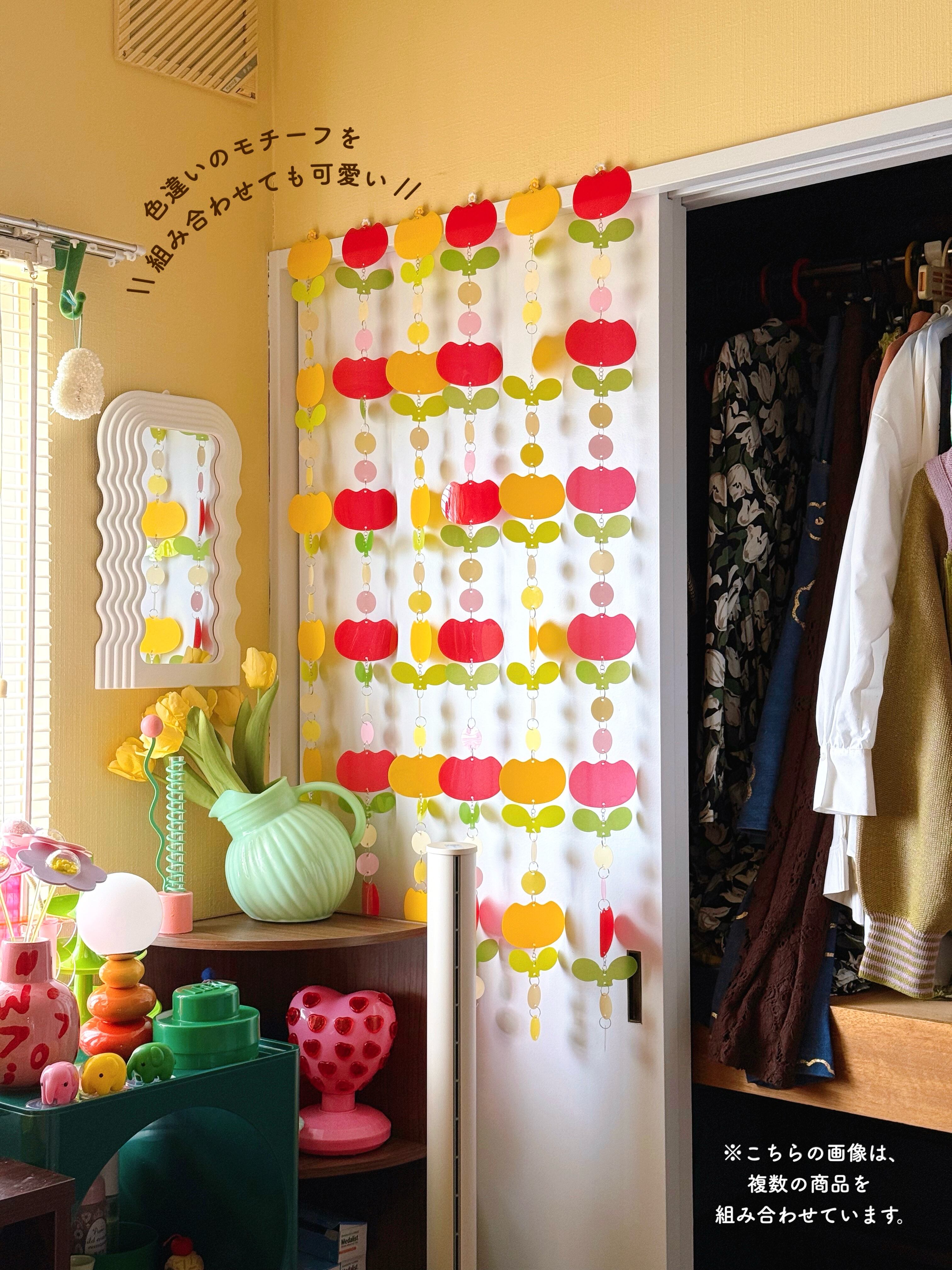 昭和時代のお家によくあったビーズカーテンやプラスチック素材を使った暖簾から着想を得た、当時を知る人には懐かしく、当時を知らない人にはどこか新鮮なインテリア装飾です。