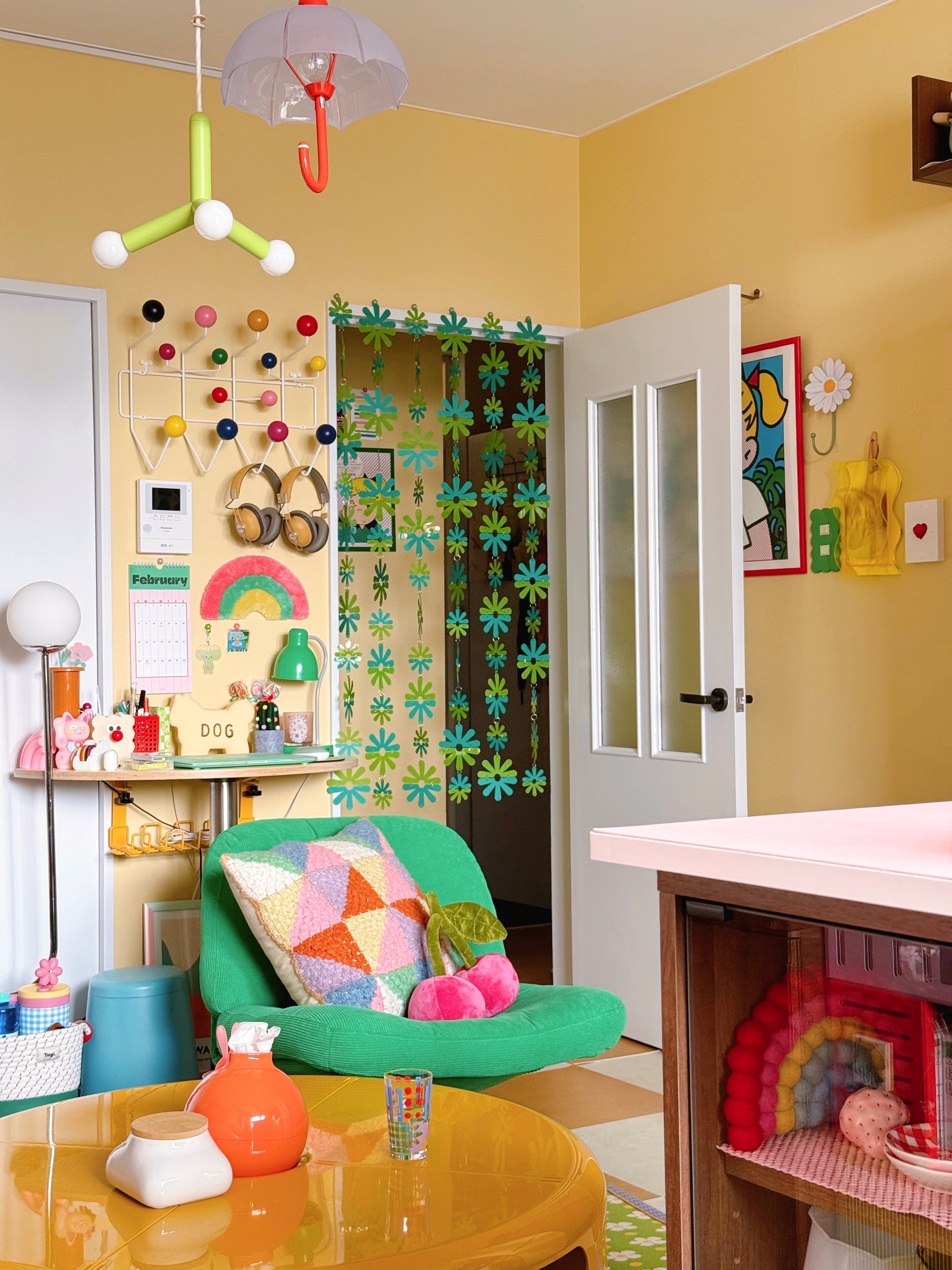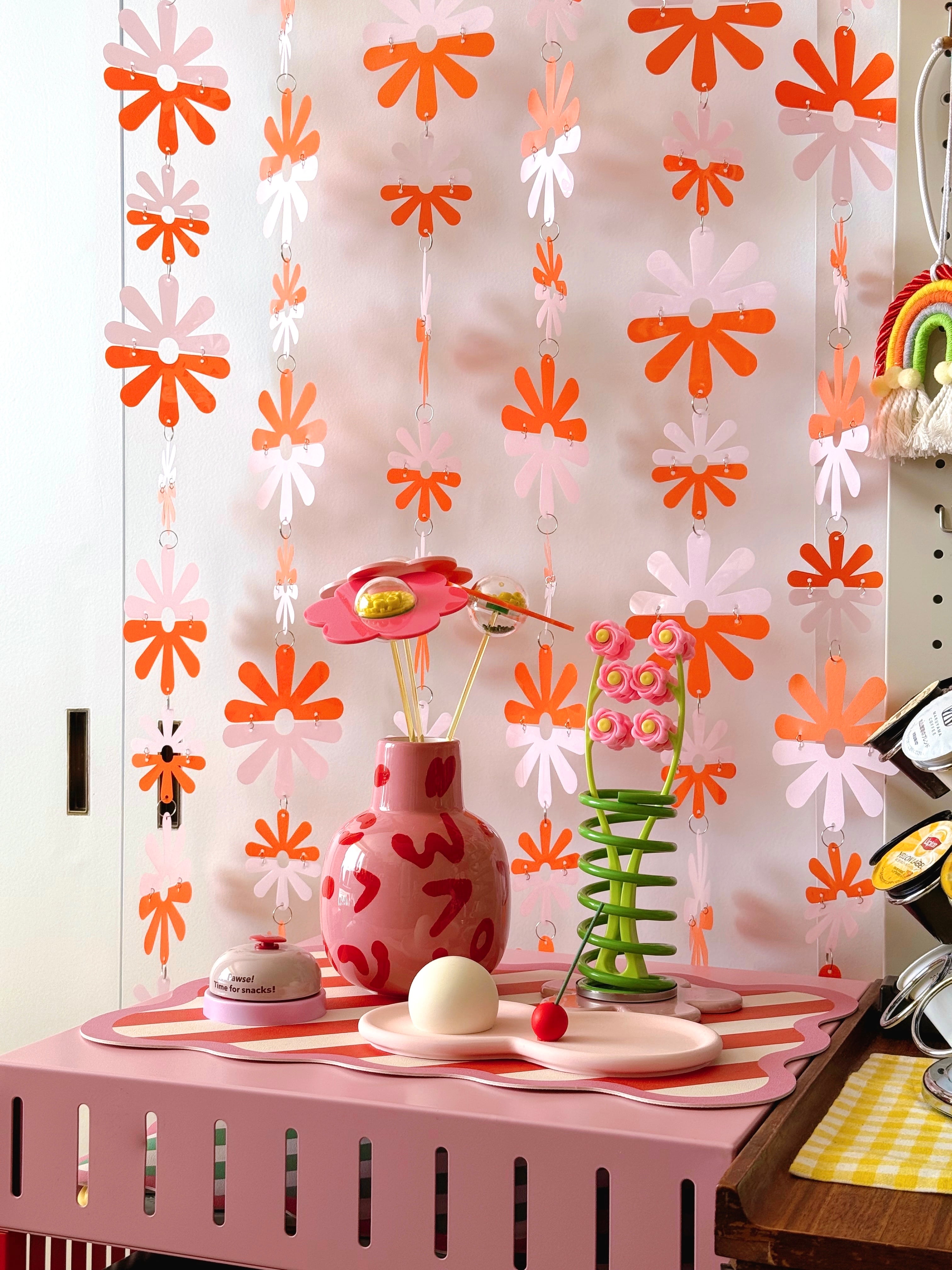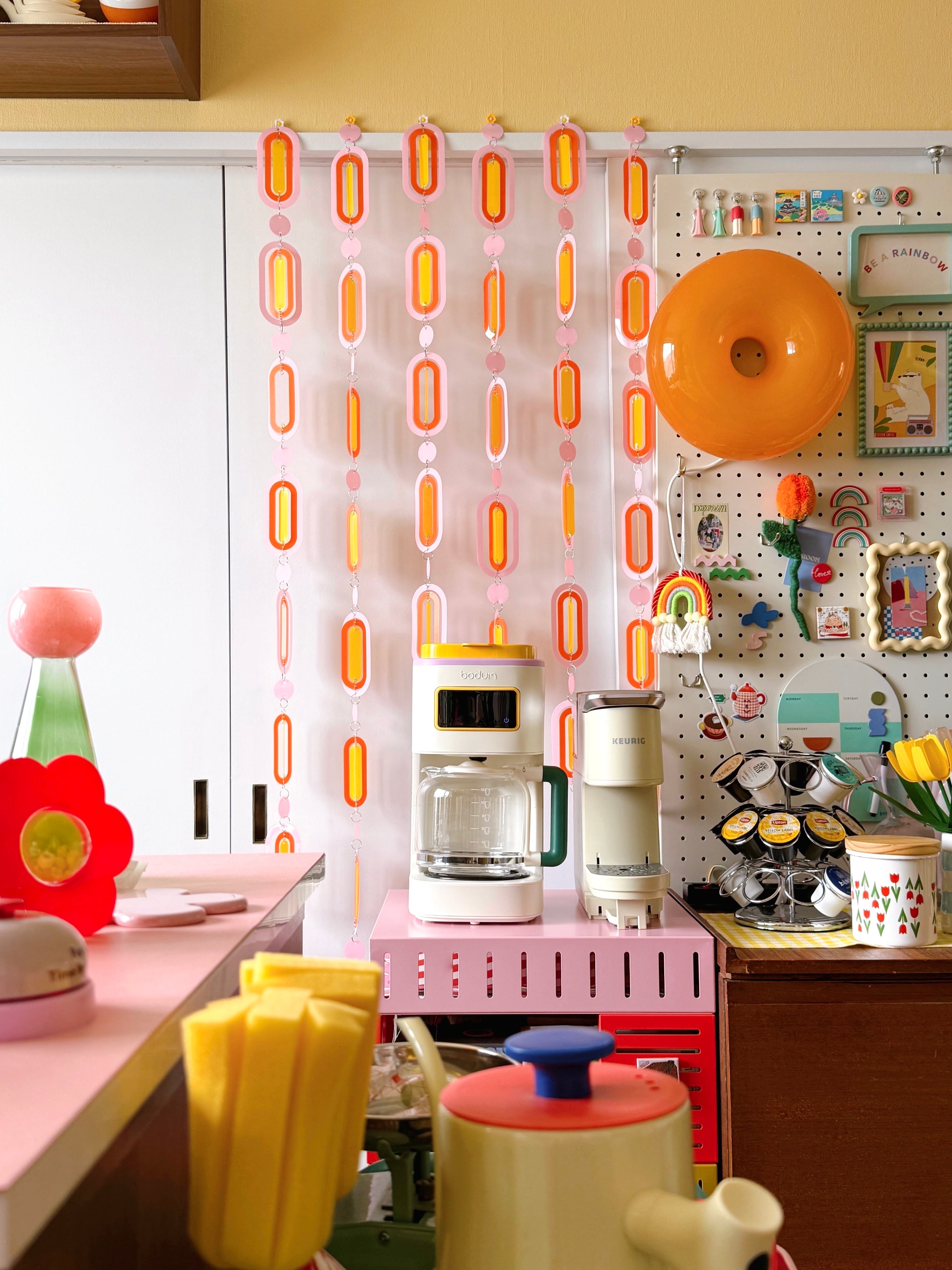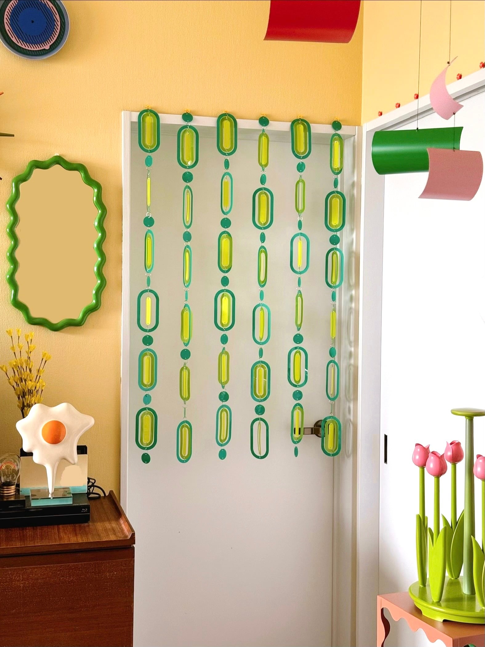 昭和時代のお家によくあったビーズカーテンやプラスチック素材を使った暖簾から着想を得た、当時を知る人には懐かしく、当時を知らない人にはどこか新鮮なインテリア装飾です。