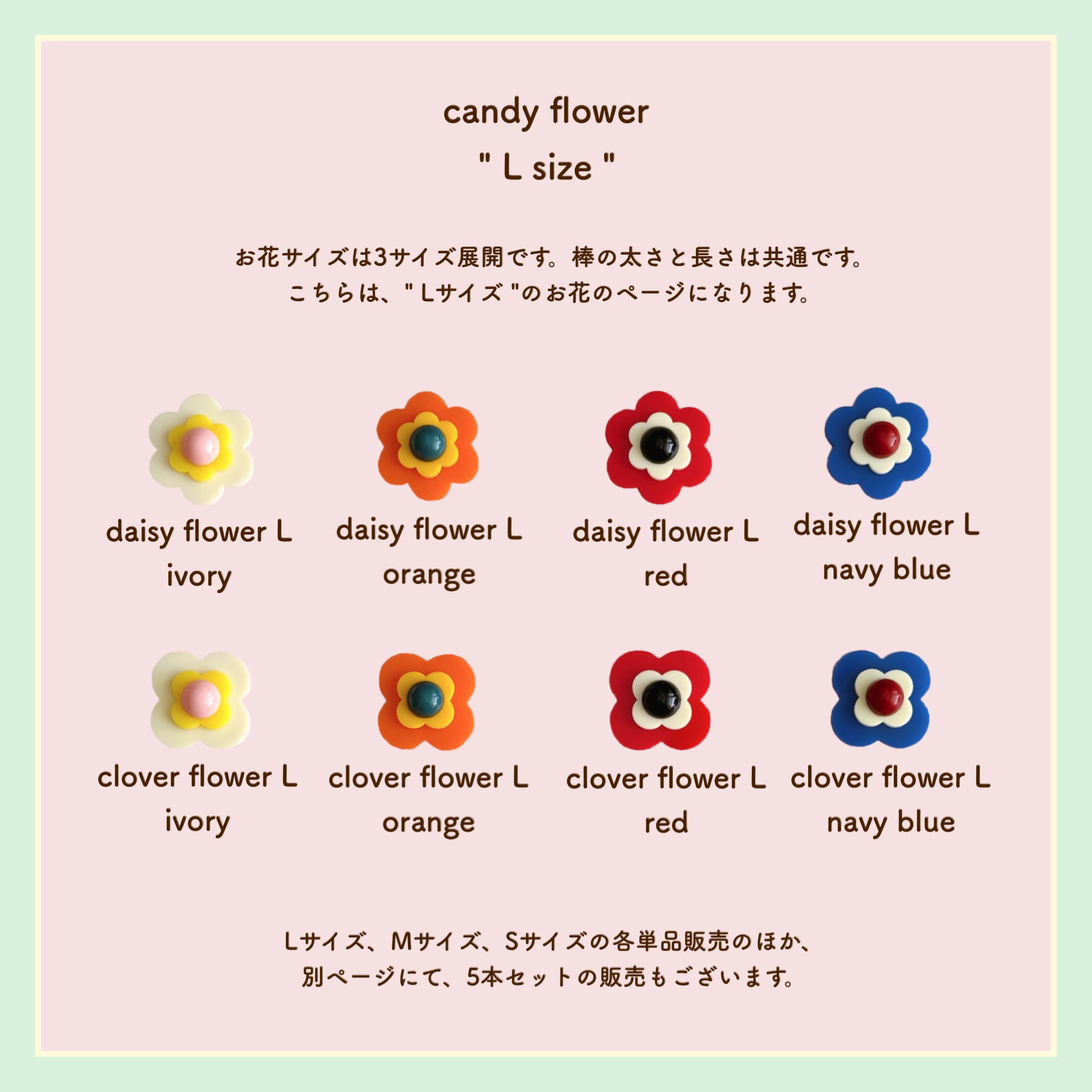 他のサイズのcandy flowerと組み合せても可愛いですよ。