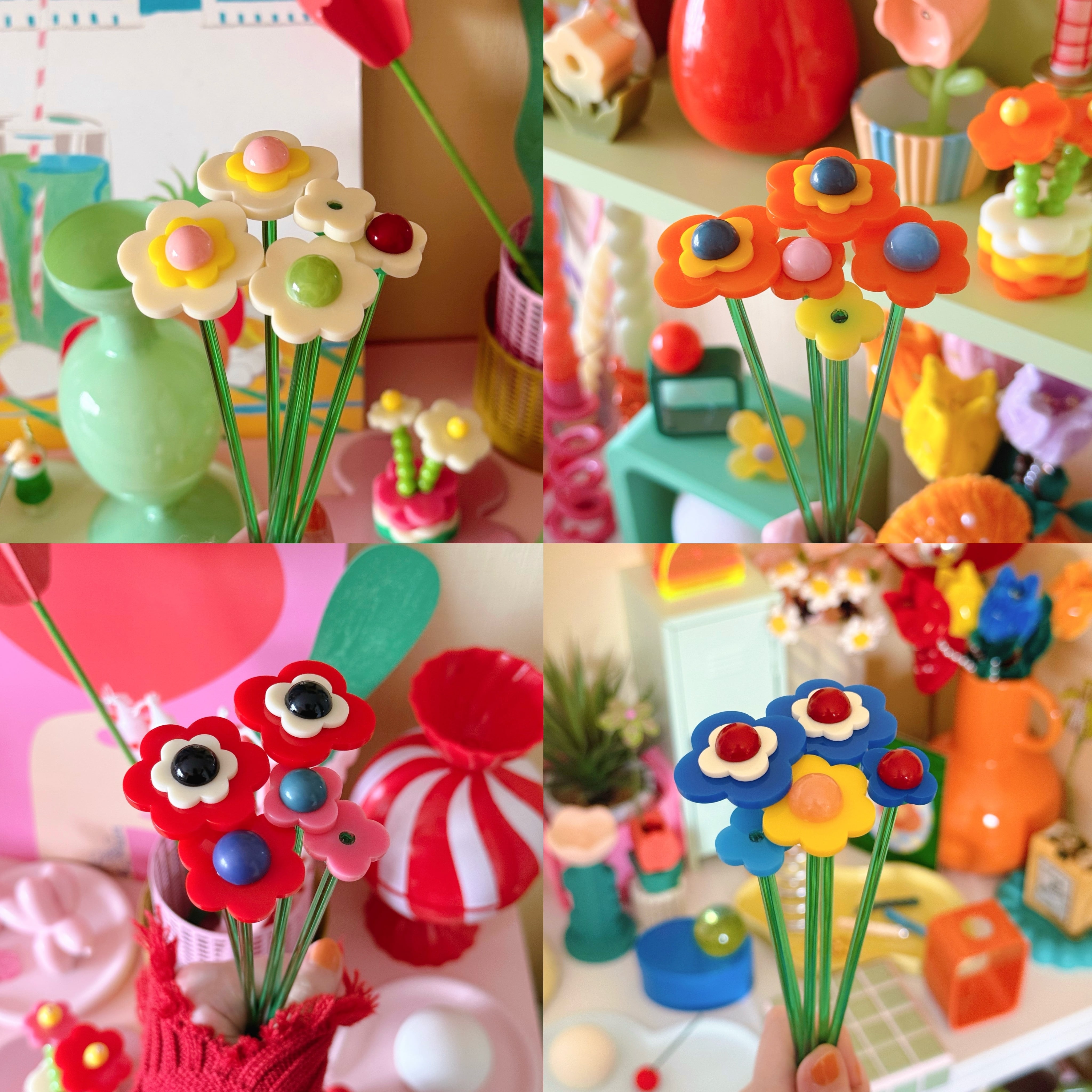 つるんとした質感と、ころんとした立体感が、まるでキャンディのようなアクリルのお花【 candy flower 】です。