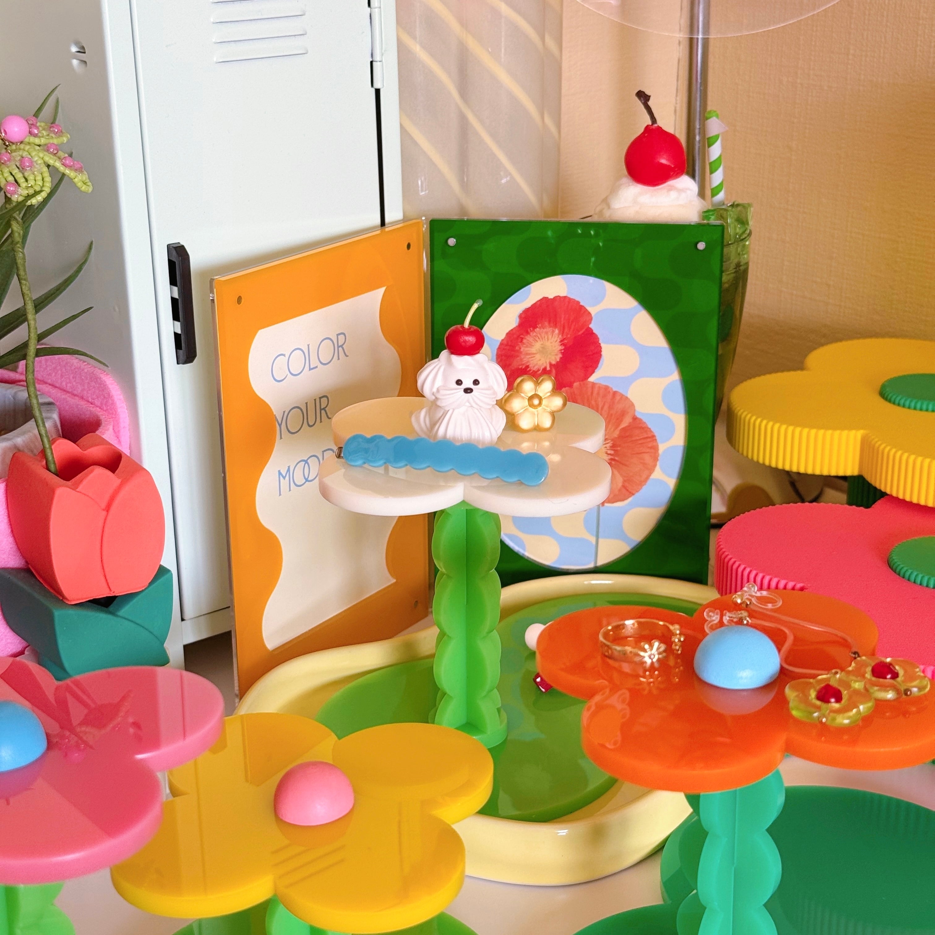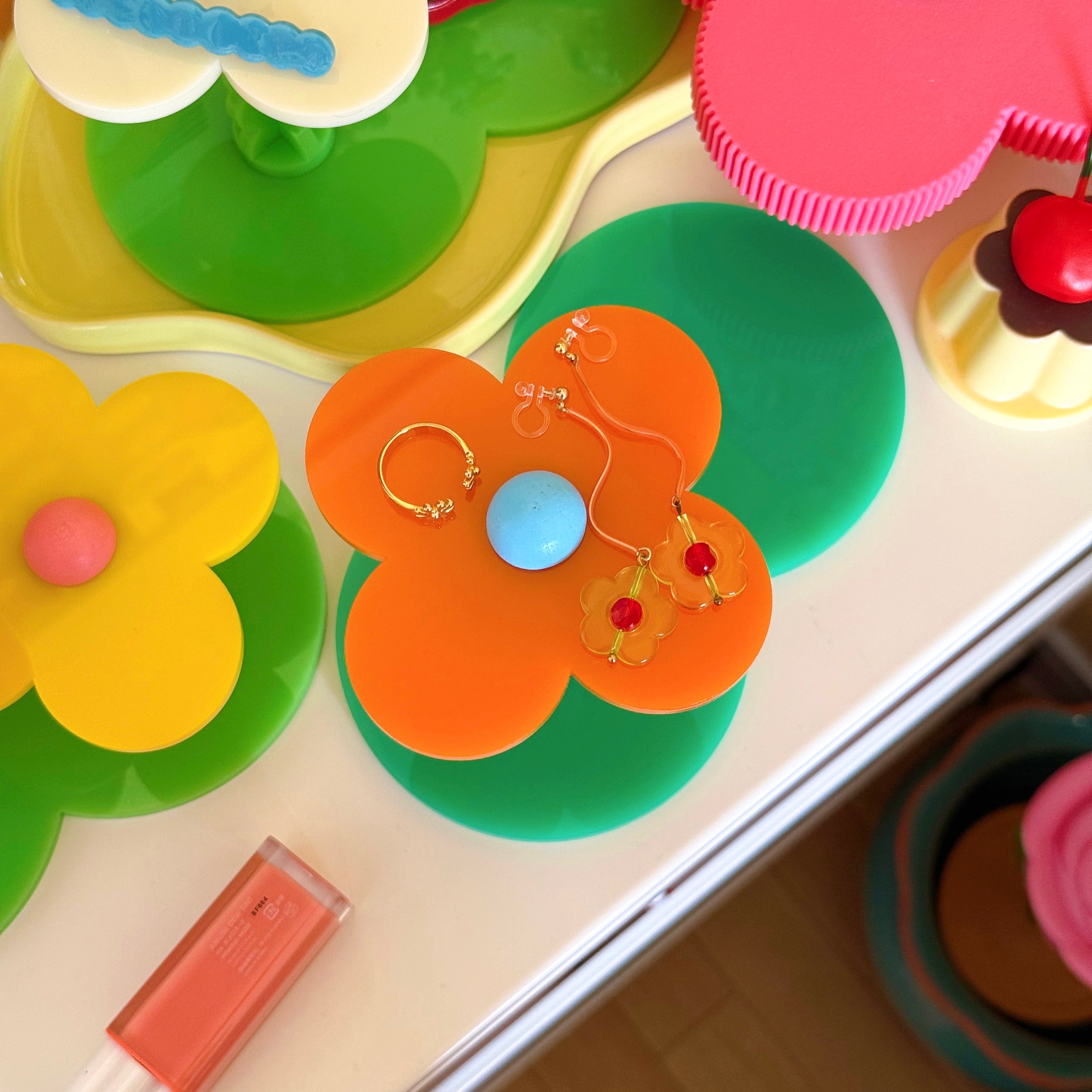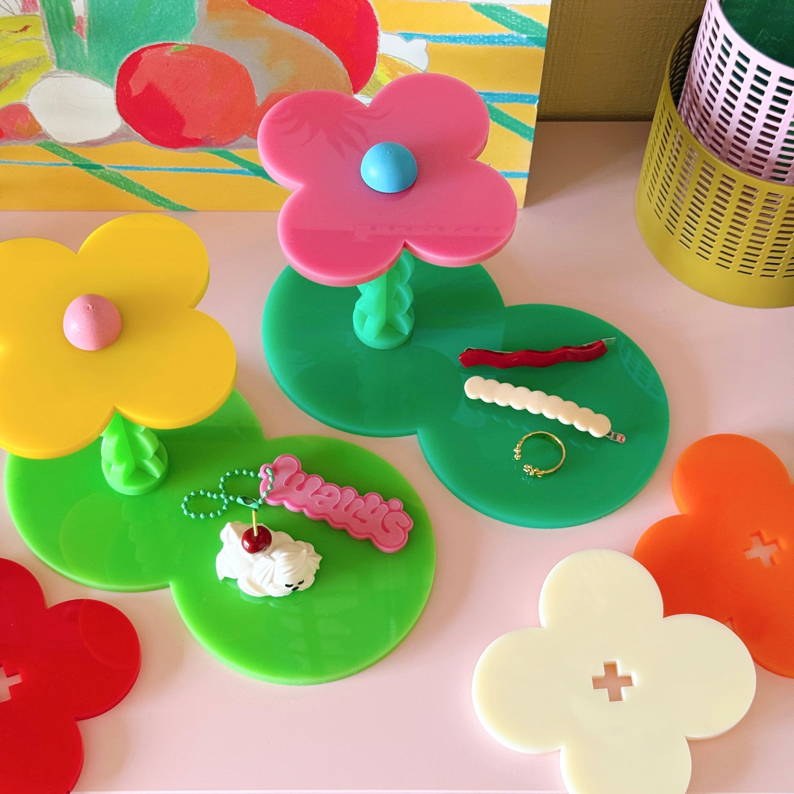 お気に入りのアクセサリーや小物を可愛く飾るための、お花の形をしたディスプレイスタンド。
