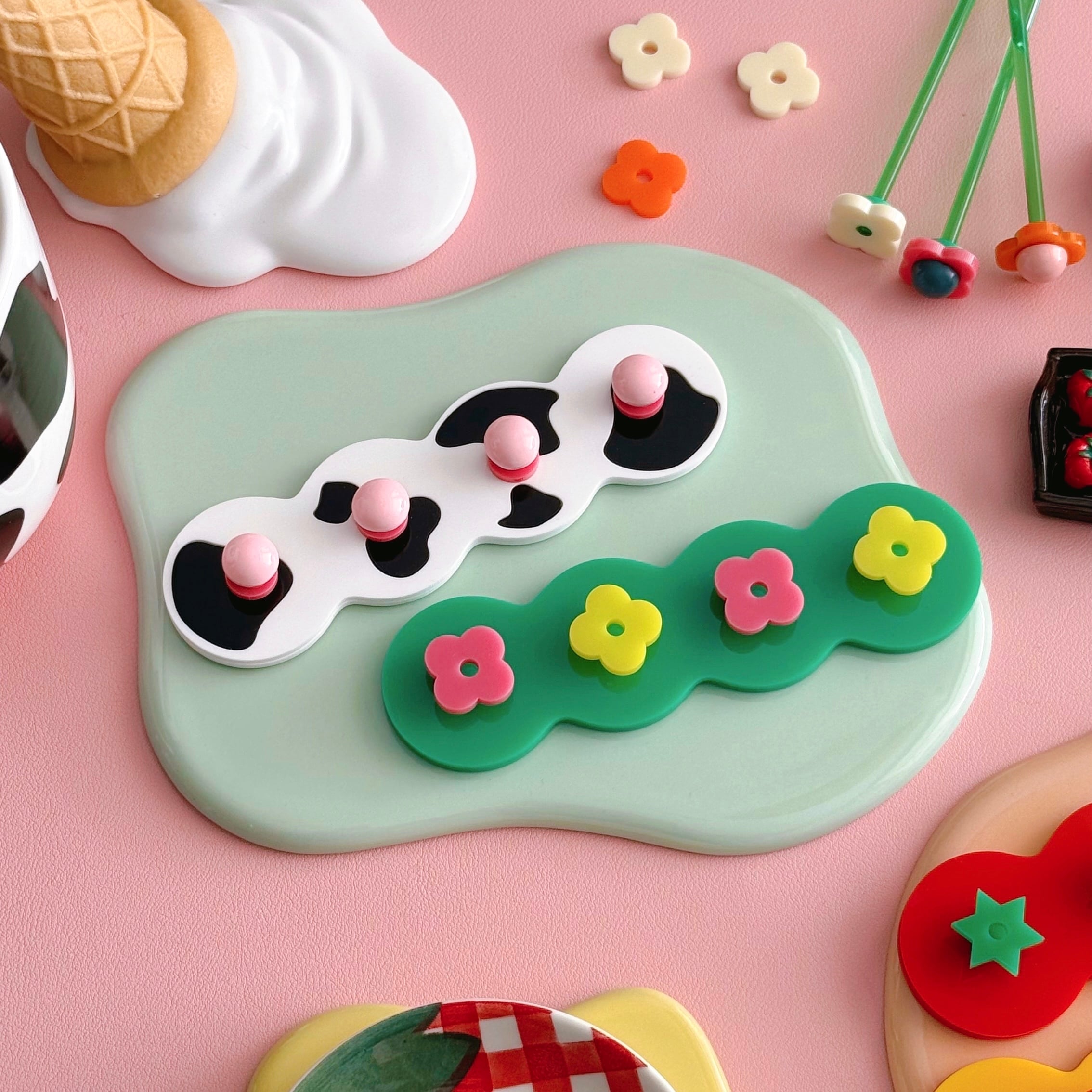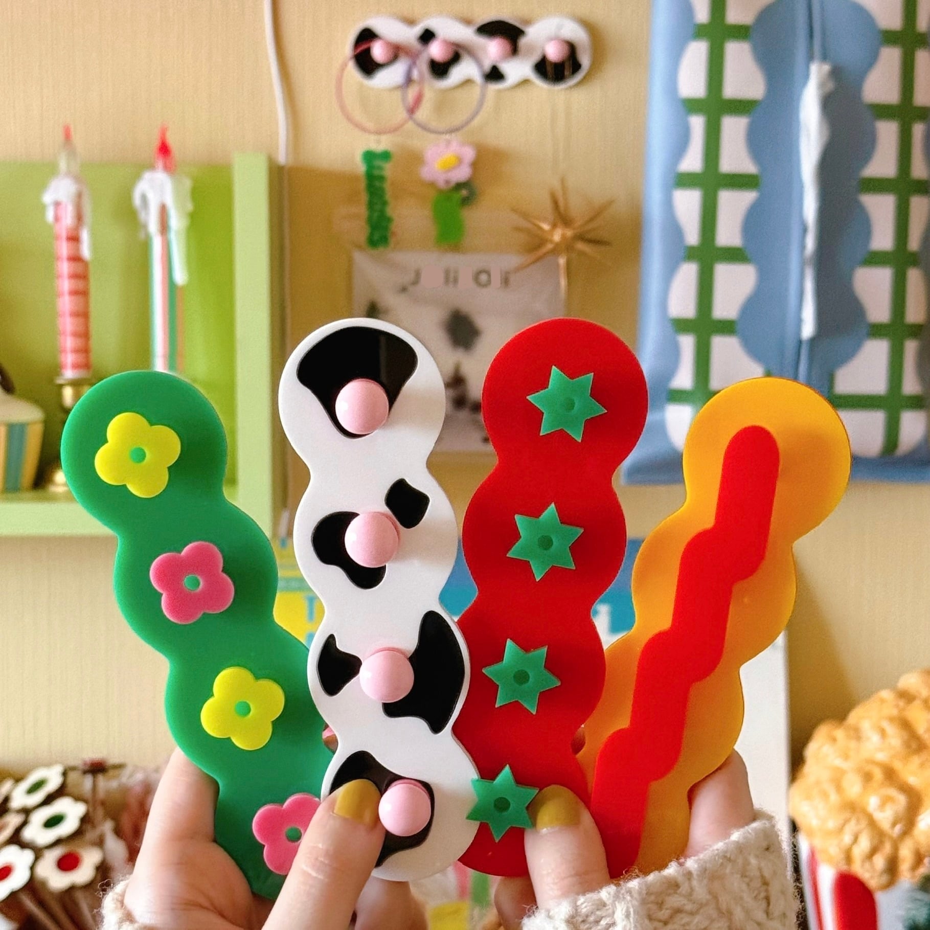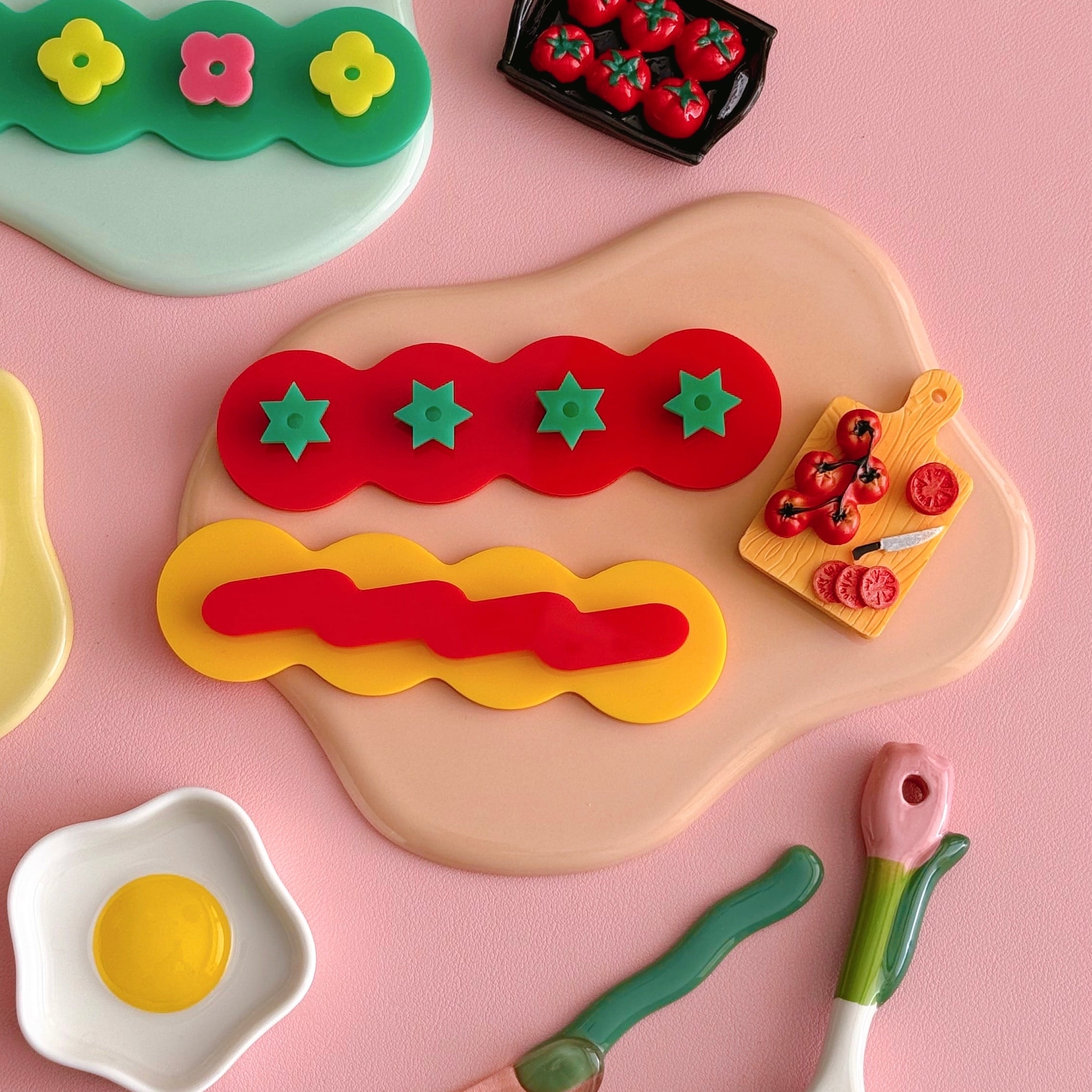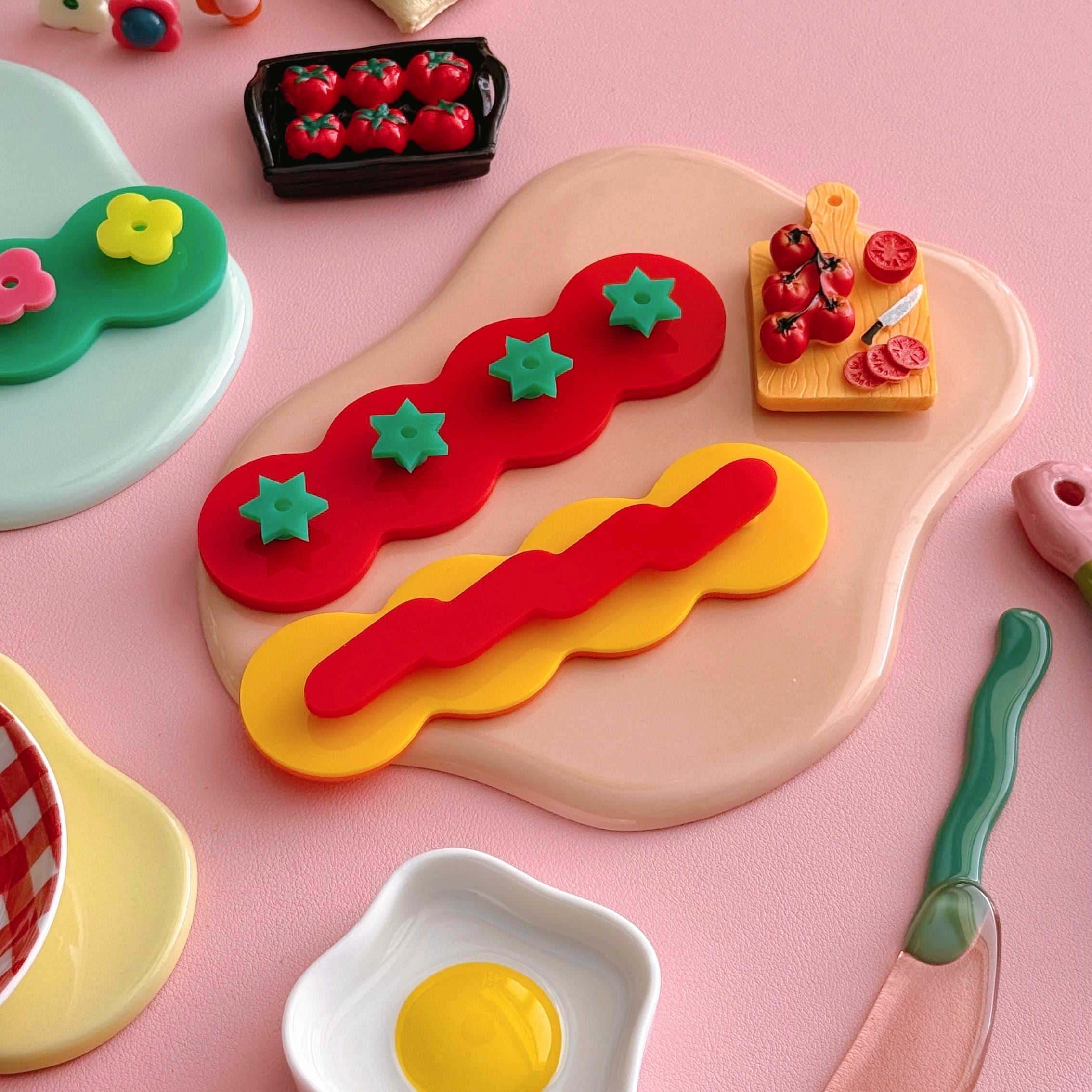 うねうねとしたウェイビーなフォルムと、ポップなモチーフがユニークながらも、実用性を兼ね備えたアイテムです。