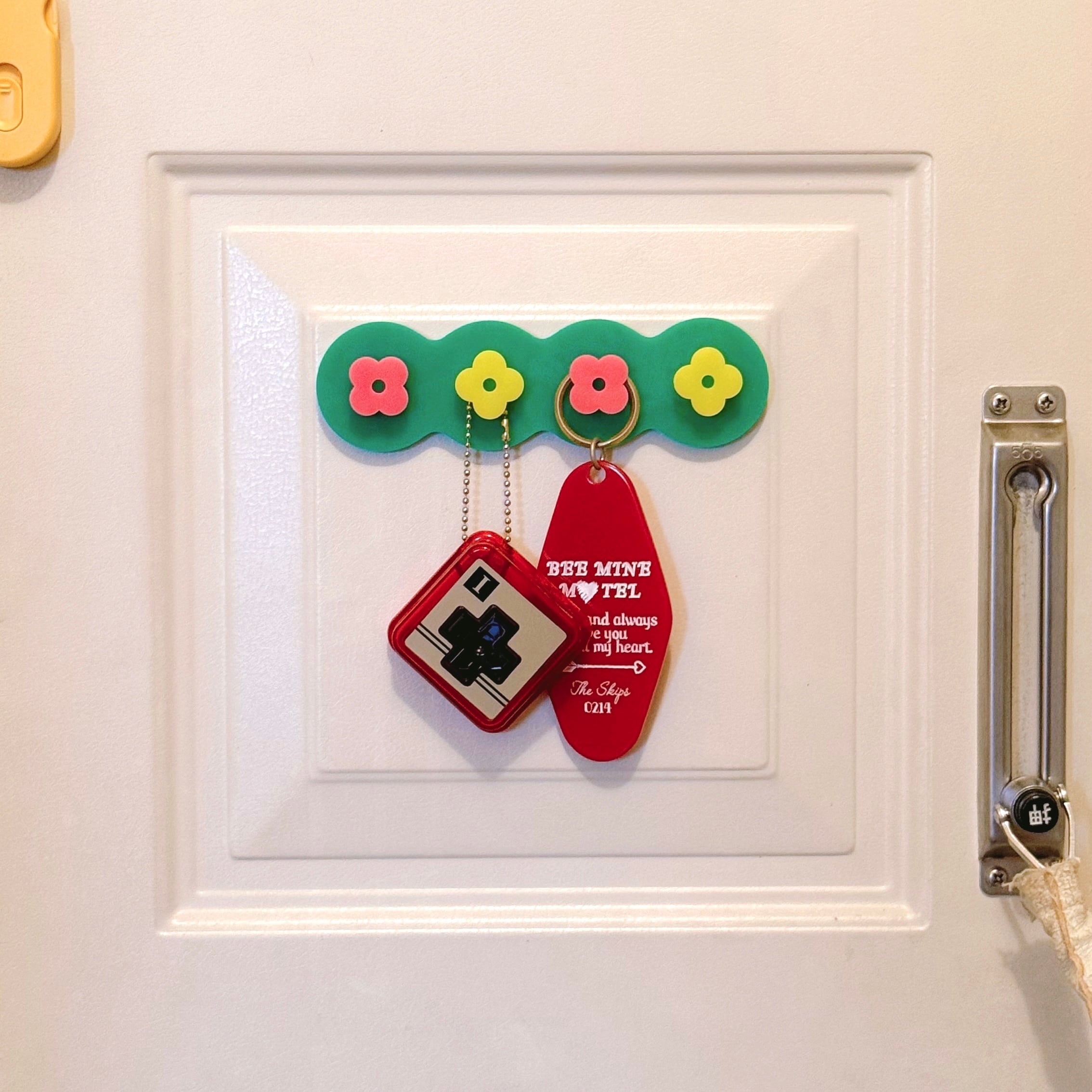 マグネット式のため、家電や玄関、デスク周りなど、マグネットをご使用になれる場所でお使いいただけます。