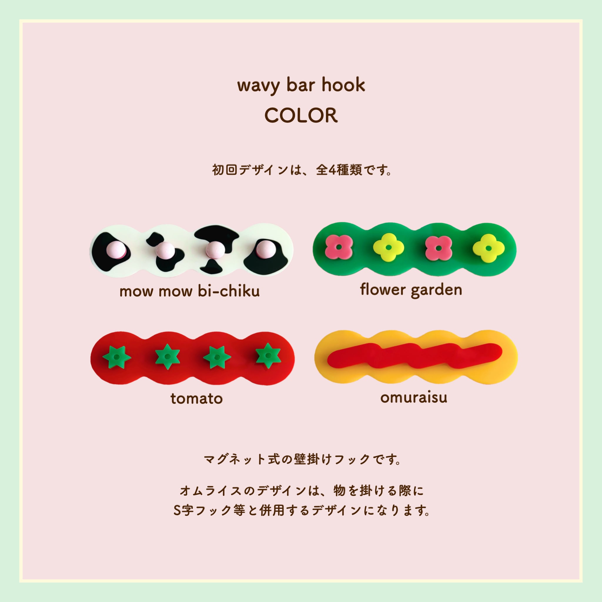 こちらのでデザインは、S字フックなどを併用する前提のデザインとなっております。