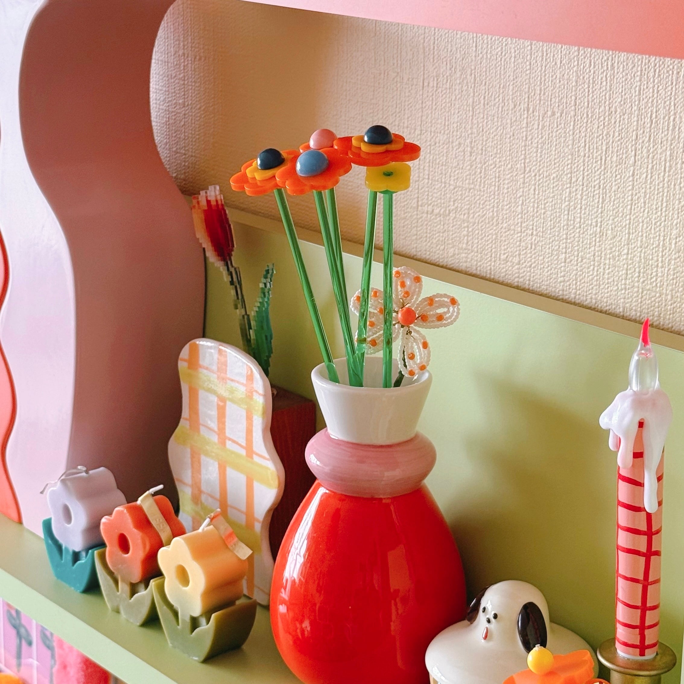 つるんとした質感と、ころんとした立体感が、まるでキャンディのようなアクリルのお花【 candy flower 】です。