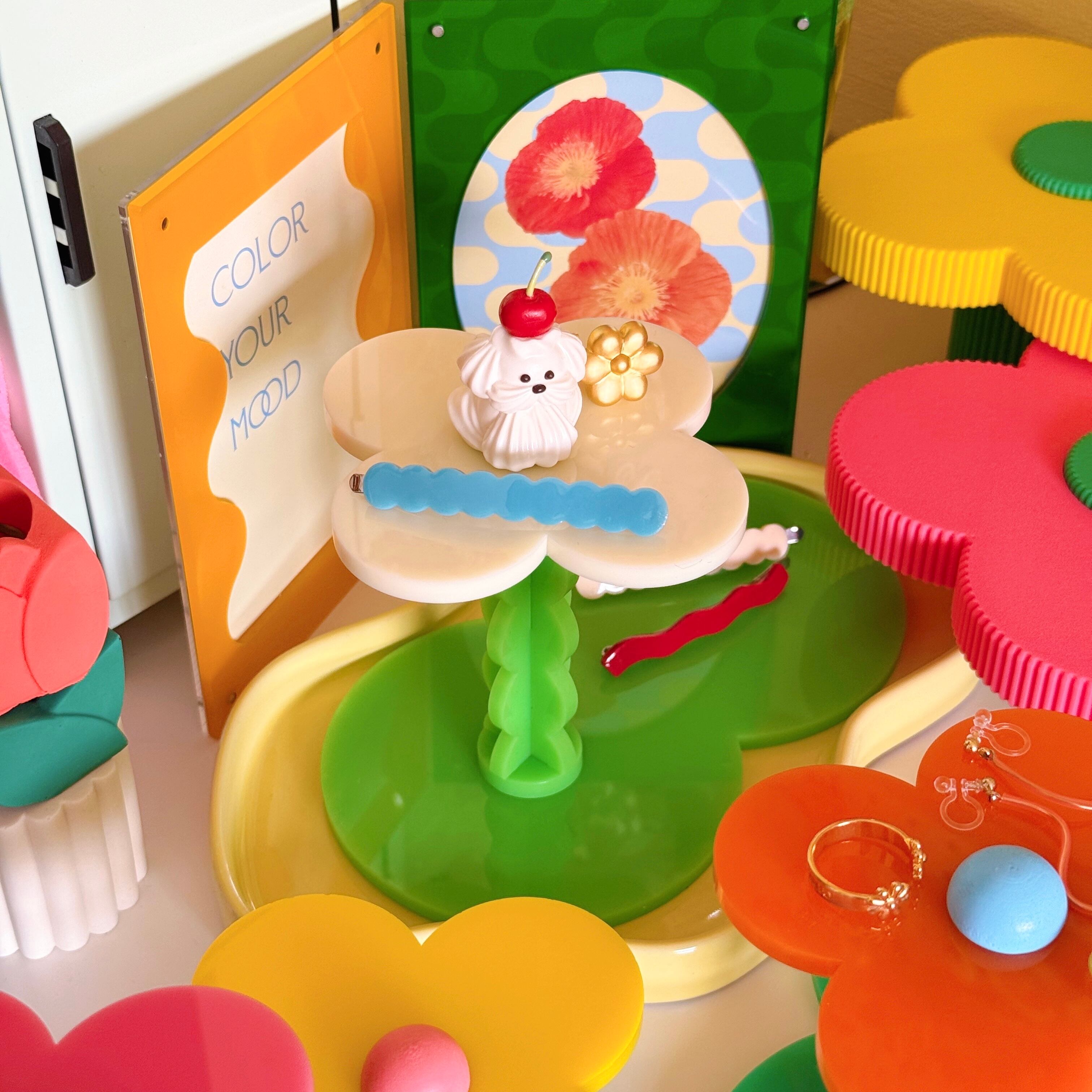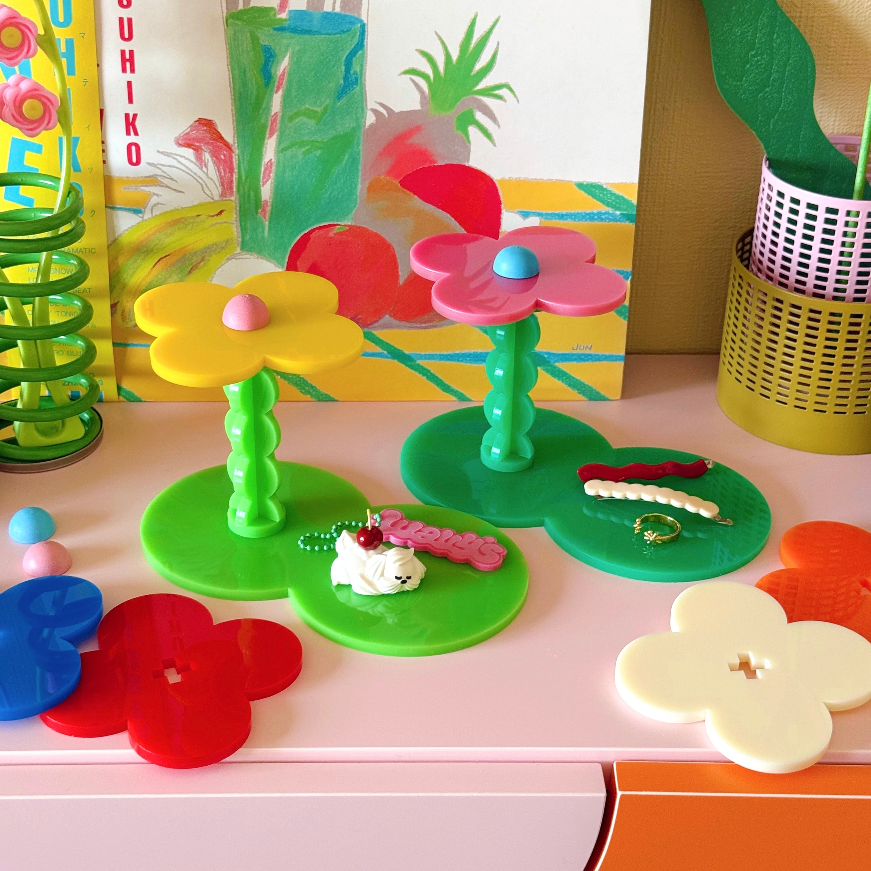 お気に入りのアクセサリーや小物を可愛く飾るための、お花の形をしたディスプレイスタンド。