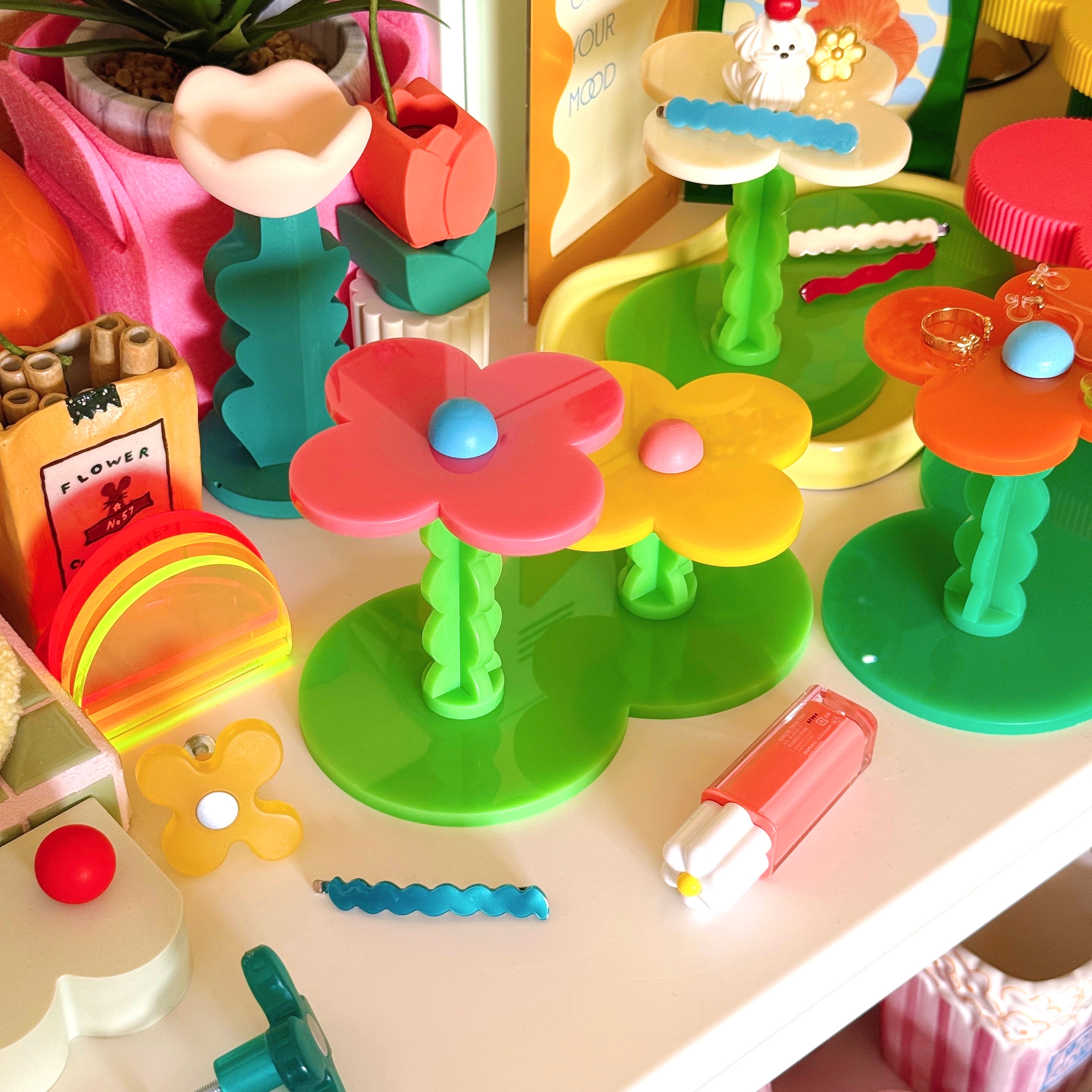 お気に入りのアクセサリーや小物を可愛く飾るための、お花の形をしたディスプレイスタンド。